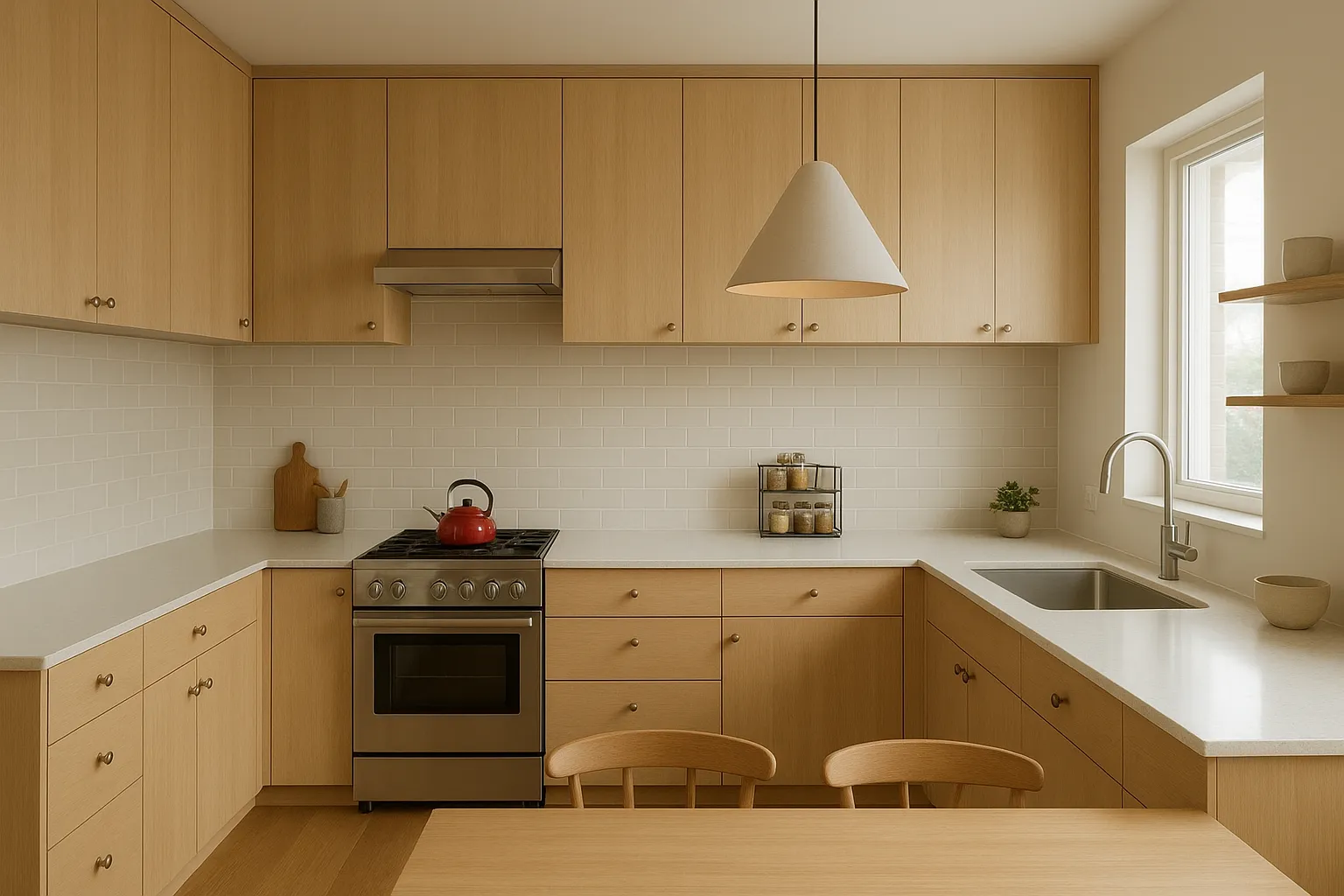 すっきりとしたキッチンを目指すには、家事動線の最適化が重要です。まず、調理・配膳・片付けの動きを短くするために、シンク・コンロ・冷蔵庫の「ワークトライアングル」を意識した配置が基本となります。また、収納を適切な場所に設けることで、使いたいものがすぐに取り出せる環境が整います。